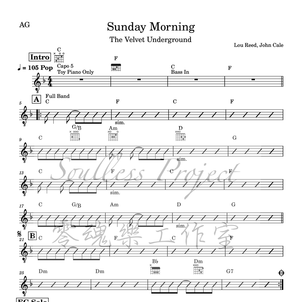 PDF Chord Chart of "Sunday Morning" by The Velvet Underground