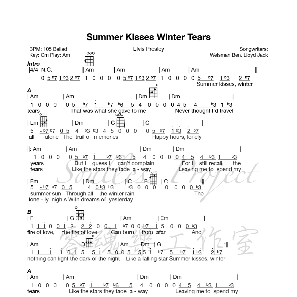 PDF Chord/Lyrics chart of Summer Kisses Winter Tears by Elvis Presley